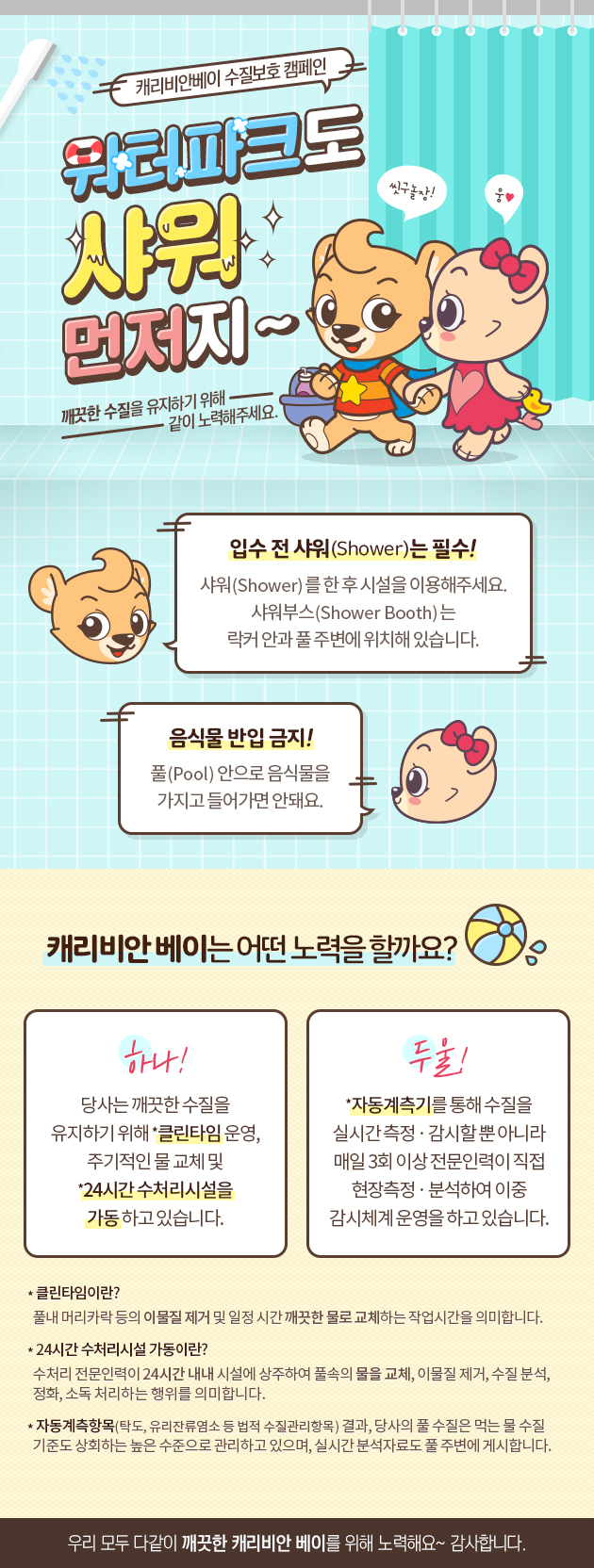 ☞ 캐리비안베이에서는 손님의 안전을 위해 어트랙션의 안전 점검을 정기적으로 시행하고 있습니다.