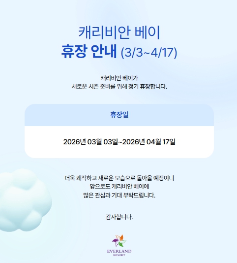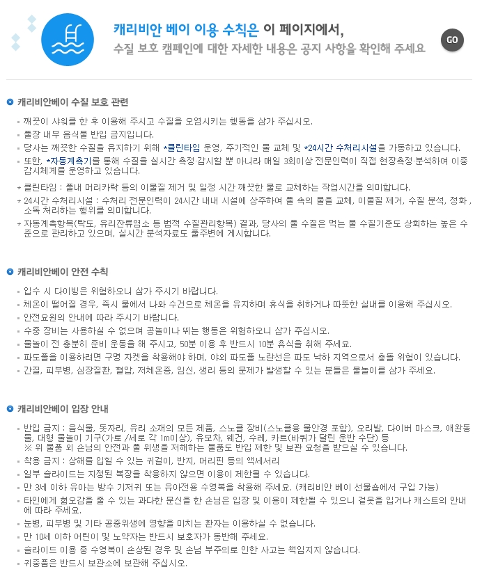 ※ 캐리비안베이이용권을 주문하신 분은 출발 당일 대표자 '카톡'으로 전송되므로 바로 제시 후 입장하십시오.