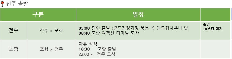 📌 왕복 예약 시, 돌아오는 날짜는 출발일 기준 이틀 후 입니다.(2박3일 패턴)